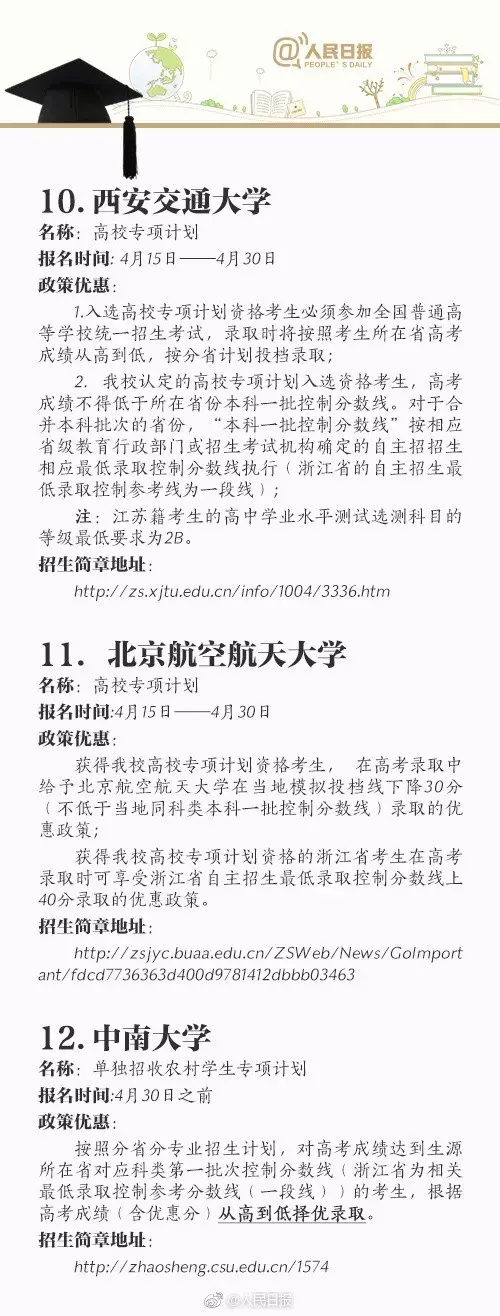 招收農(nóng)村和貧困地區(qū)學生專項計劃。