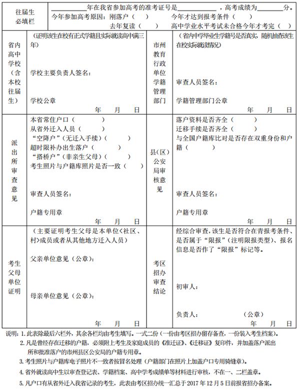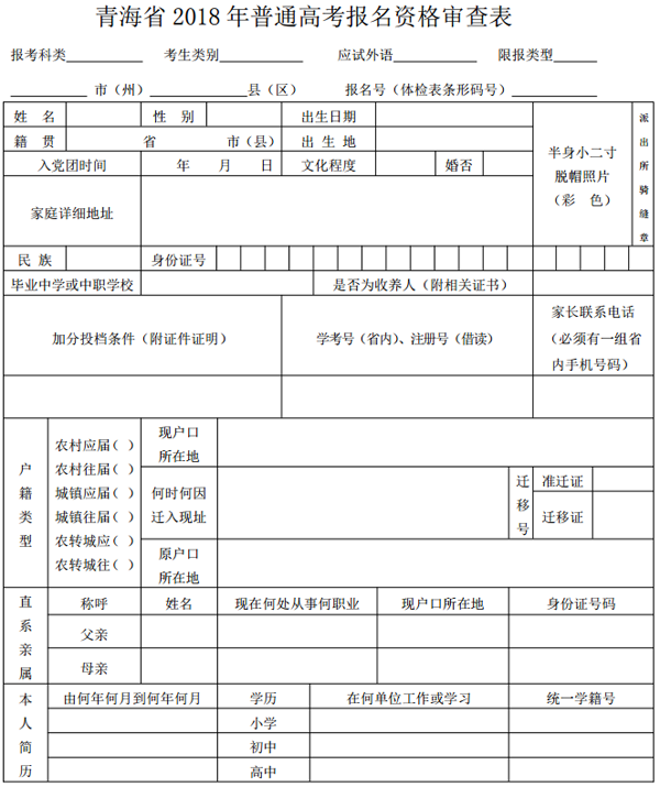 5.青海省2018年報考國家貧困專項計劃考生報名 資格審查表