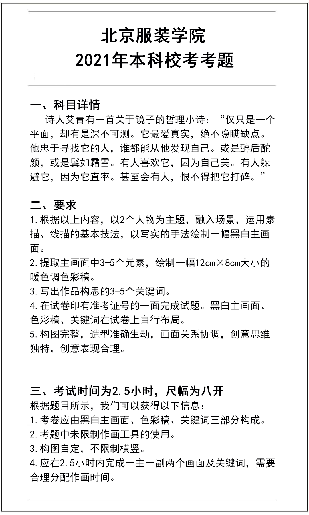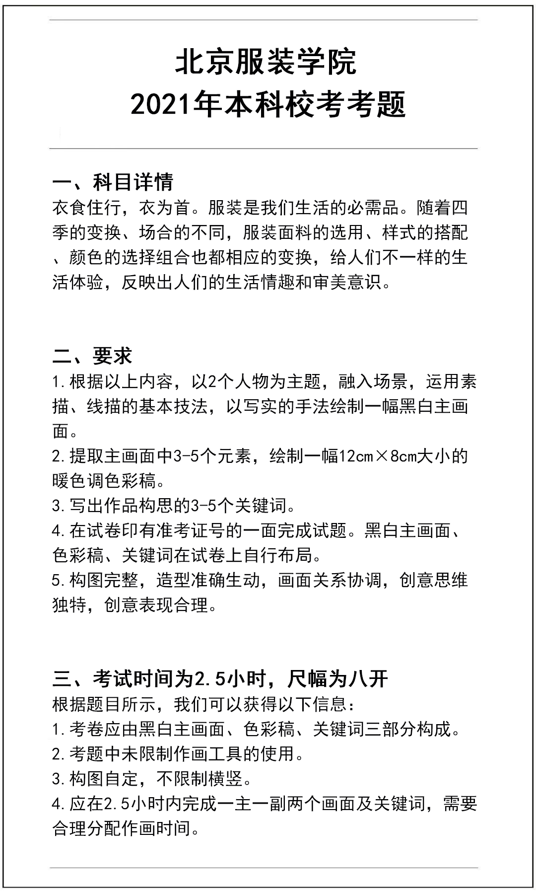 北京服裝學(xué)院2021年美術(shù)??伎碱}