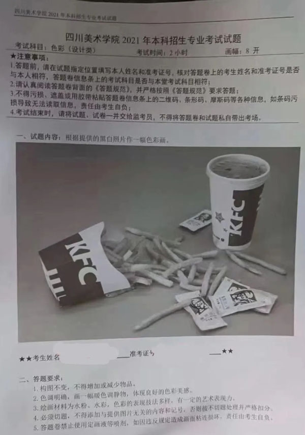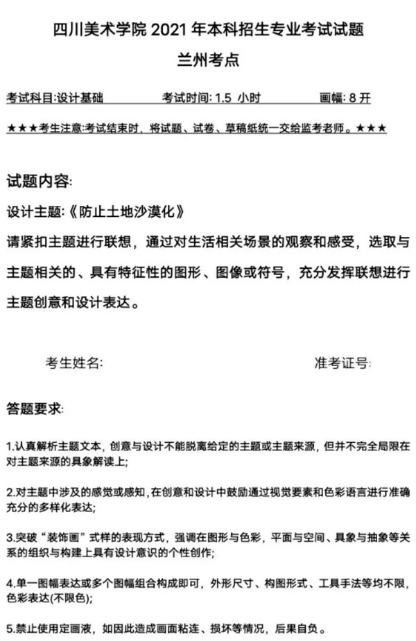 四川美術(shù)學(xué)院2021年第二場(chǎng)考試于2月26日在蘭州、長(zhǎng)沙、鄭州舉行,具體考題如下: