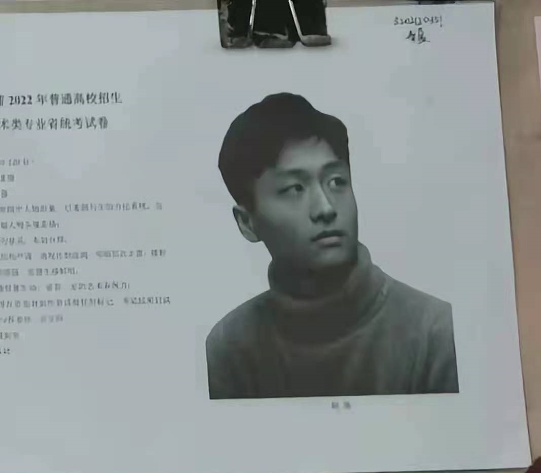 素描考題:素描男青年頭像,側(cè)面,穿毛衣,照片模擬寫生,如附圖。