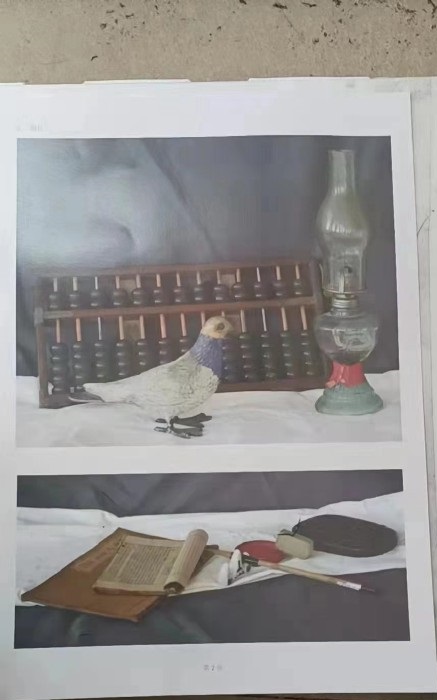 色彩考題:靜物組合,算盤、鴿子(模型)、馬燈、筆、墨、紙、硯、書