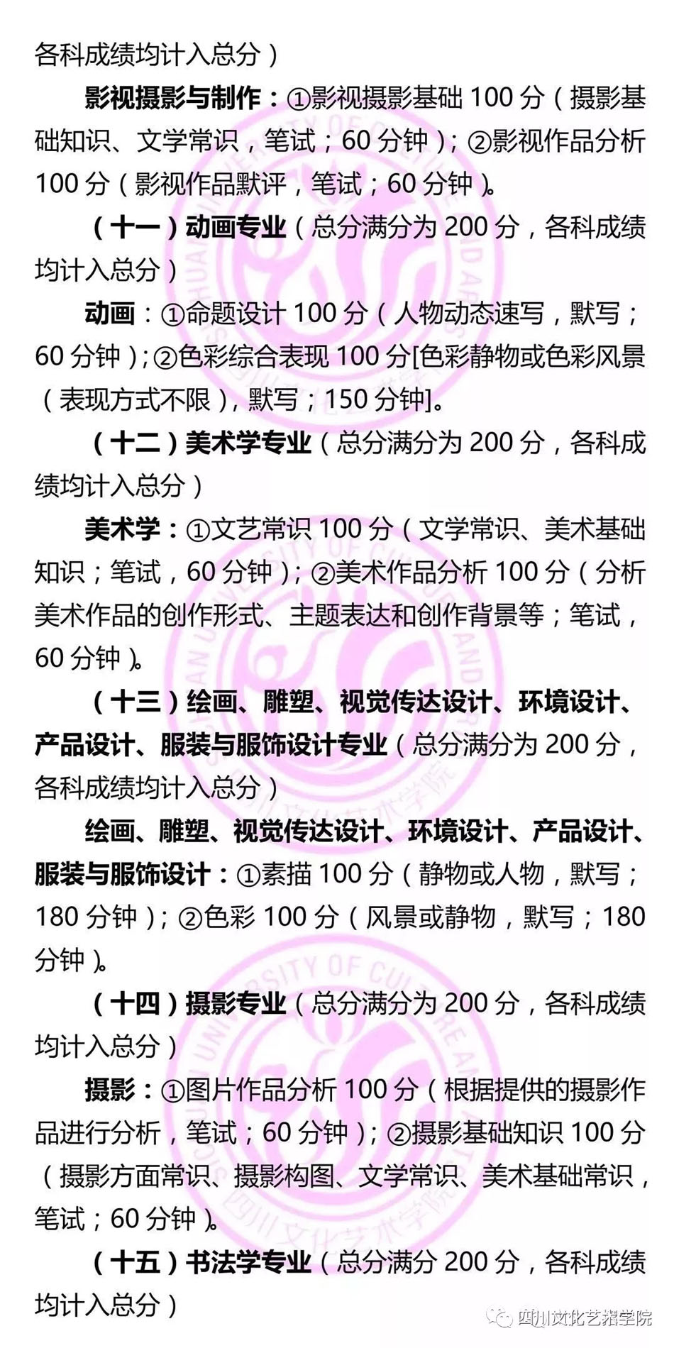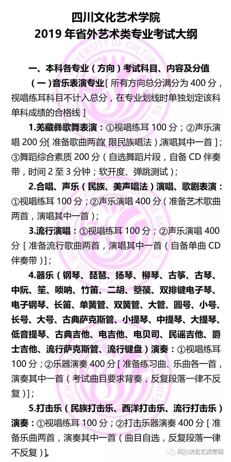 2019年四川文化藝術學院省外藝術類專業(yè)考試大綱