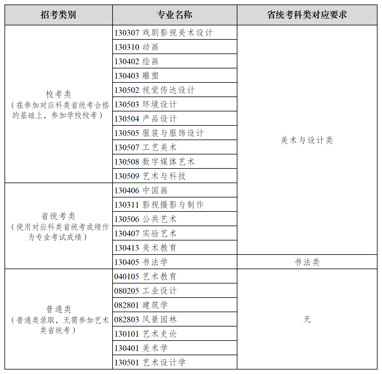 四川美術(shù)學(xué)院關(guān)于2026年本科招生專業(yè)、類別及省統(tǒng)考科類對(duì)應(yīng)要求的公告